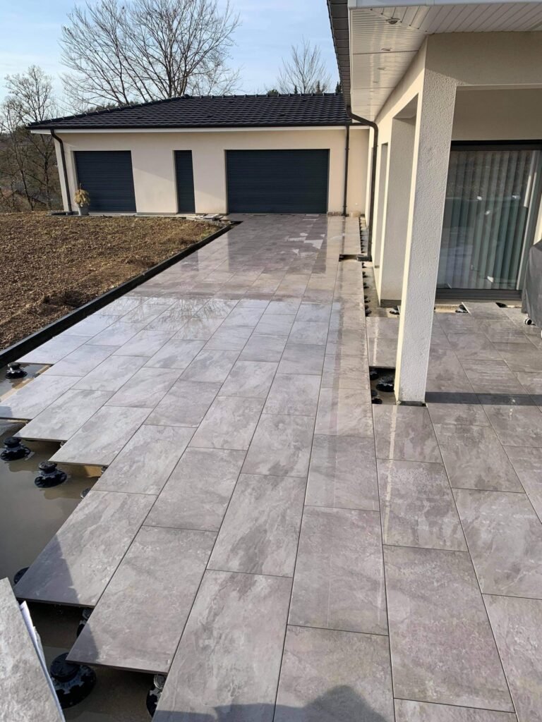 Nous assurons la fourniture et la pose de dalles et pavés pour vos cours, allées, terrasses ou zones d’évacuation des eaux pluviales.